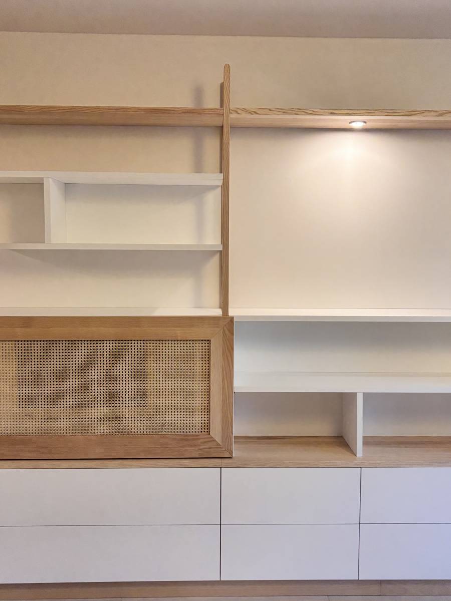 Pensée comme une architecture intérieure à part entière, cette bibliothèque incarne une esthétique sobre et intemporelle, où chaque détail révèle un soin artisanal et une recherche d’harmonie.